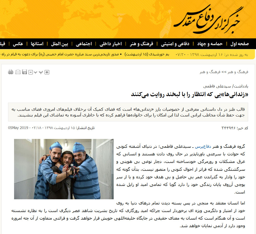 «زندانیها» فیلمی است که در دل ما شعله امیدی روشن میکند. ما به هر جا نگاه میکنیم پر از فسادِ قدرت طاغوت و سلطه شیطان و اذناب منطقهای و داخلی آنهاست. البته «زندانیها» کاستی بزرگی دارد،وان فراموشی مصلحتجویانه بازتاب چالشهای داخلی درون قدرت، وجریان مبارزه اجتماعی دادخواهان با مسئولان بیدادگر و ریاکار است که اشاره به ان را به فراموشی سپرده است.