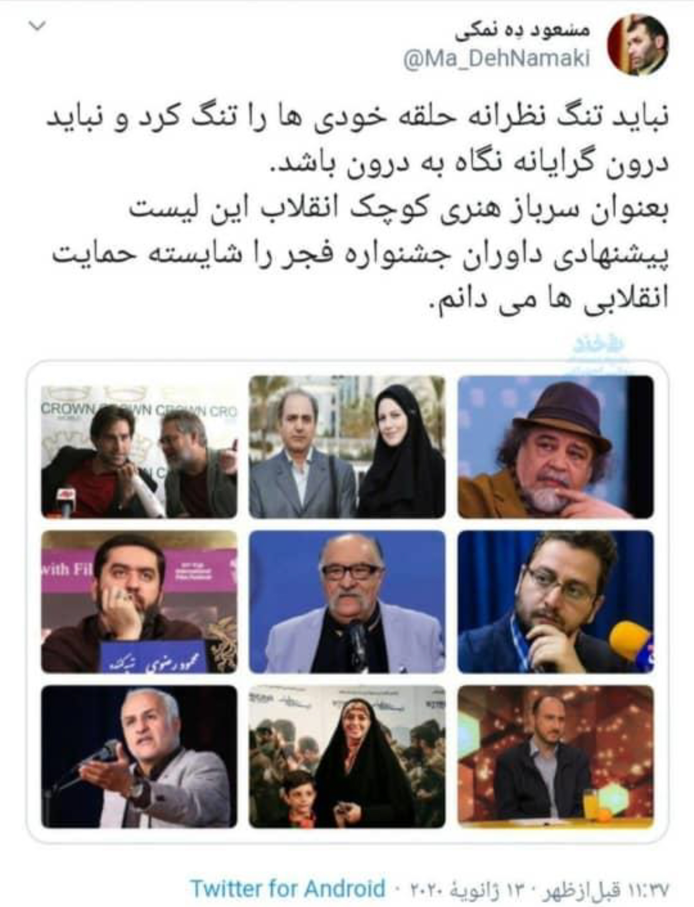 این حساب توئیتری که به نام بنده درست شده و بیانیه صادر میکند جعلی است.
